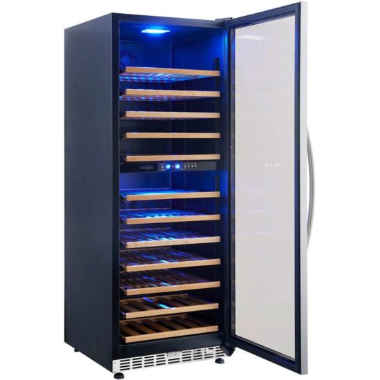 Wine coolers, also referred to as wine refrigerators, chill wine to optimum storage and serving temperatures. Frame door, Beech wood shelves, fan forced evaporator cooling system.
